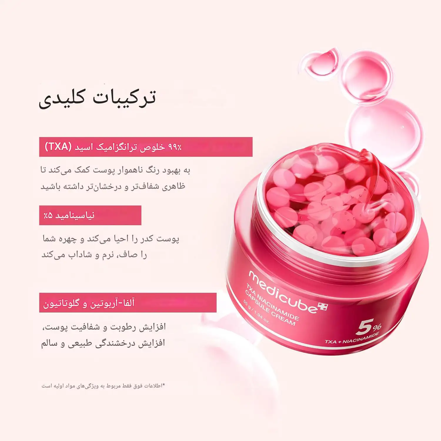کرم کپسولی نیاسینامید و ترانگزامیک اسید مدی کیوب | ضد لک و روشنکننده پوست