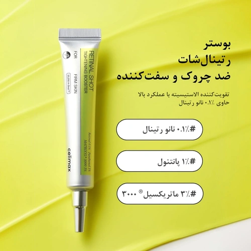 بوستر رتینال شات سلیمکس (Celimax Retinal Shot Booster) یک محصول ضدچروک و ضدپیری کرهای است که با ترکیبات پیشرفته، پوست را سفتتر، شفافتر و جوانتر میکند. این بوستر به دلیل داشتن رتینال نانویی ۰.۱٪، پپتیدهای ماتریکسیل و هیالورونیک اسید، یکی از بهترین گزینهها برای مراقبت تخصصی پوست محسوب میشود.